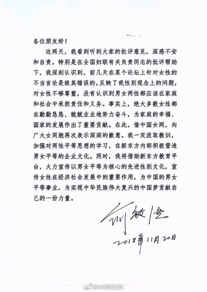 俞敏洪/道歉信/全国妇联/感谢信/李诗怀律师
